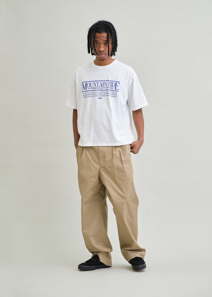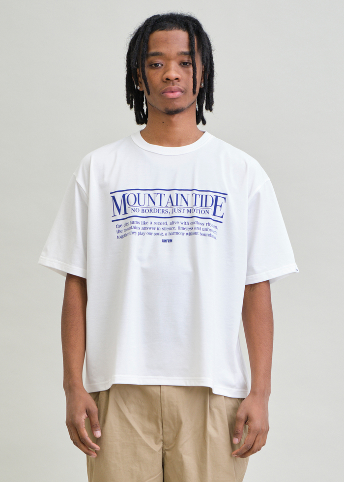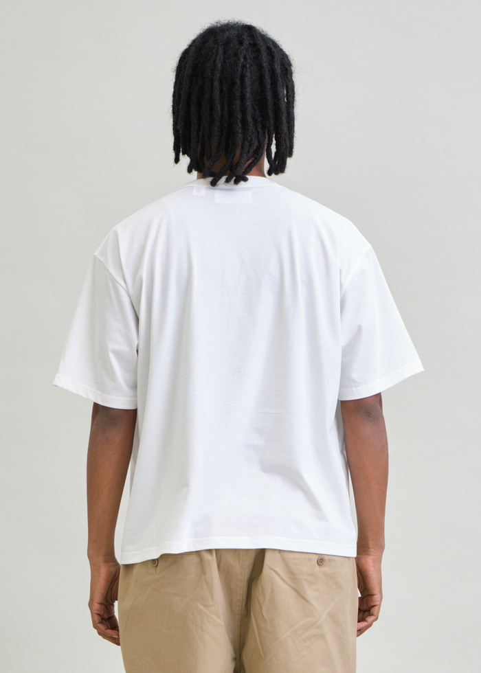 日本製の高機能素材 AEROKNOT® を採用したHEAVYWEIGHT “UOS” BOX T-SHIRT。ヘビーウェイト天竺見えのドライ素材で、吸水速乾・UVカット性を兼備。やや丈短めのボックスシルエットが都会的なバランスを形成。フロントの“UOS”プリントがミニマルな存在感を引き立てる一着です。