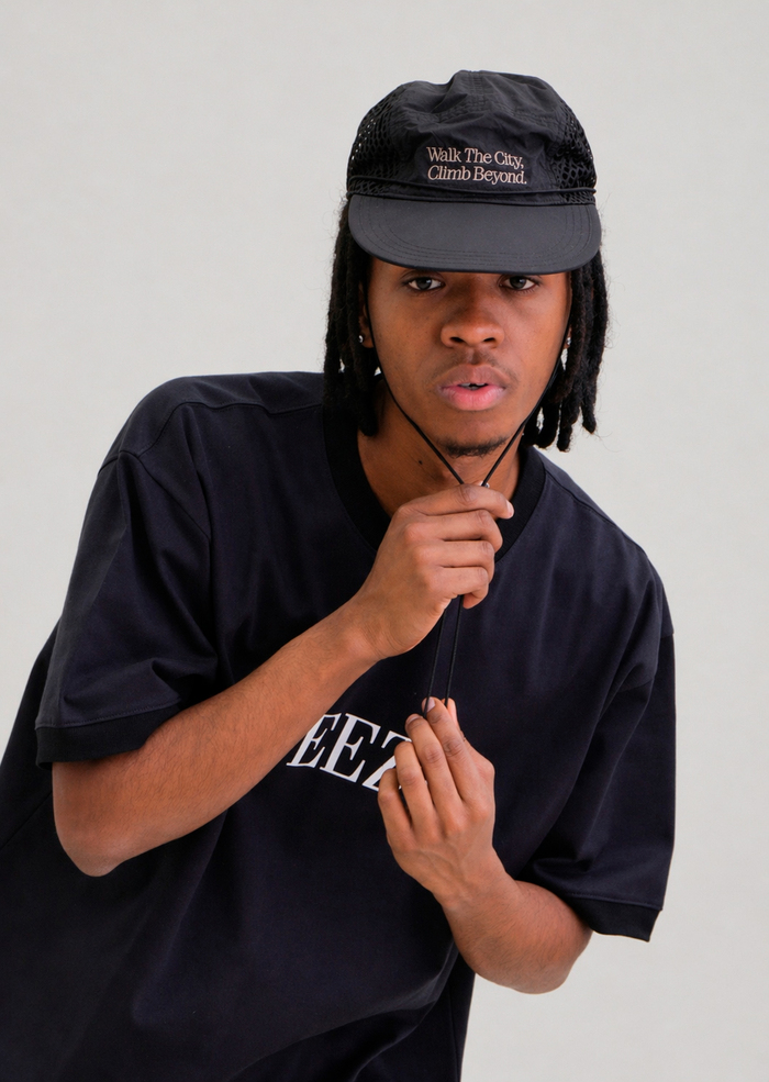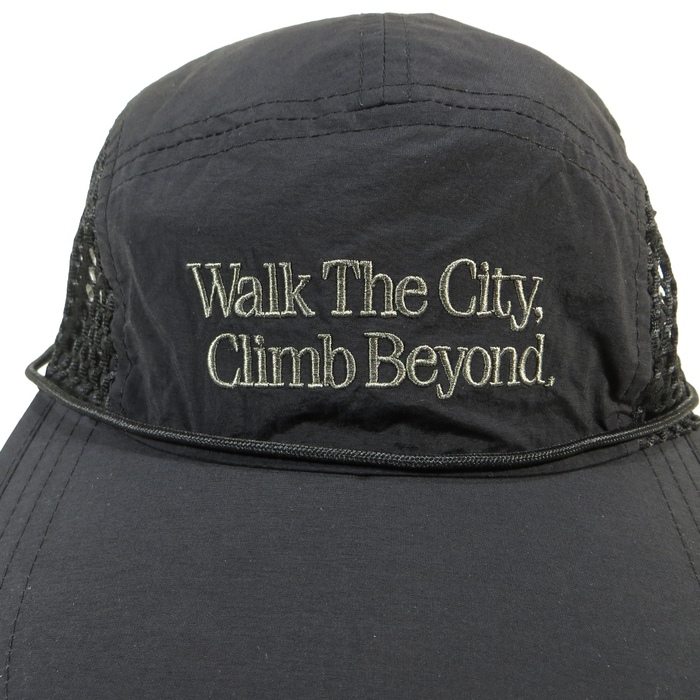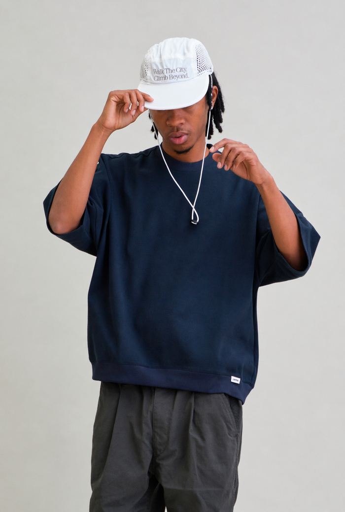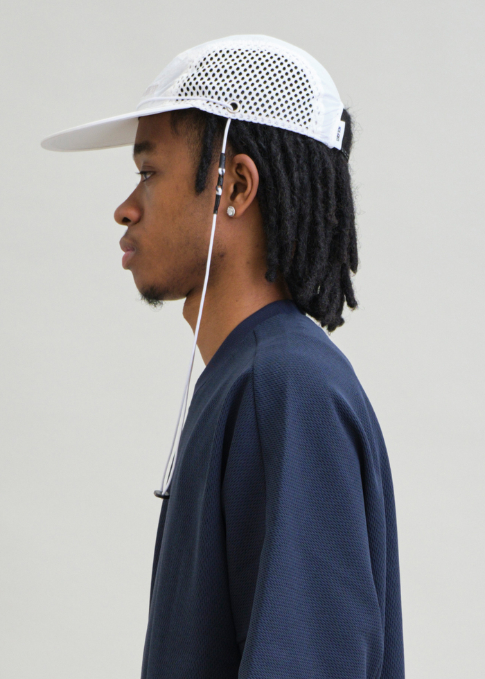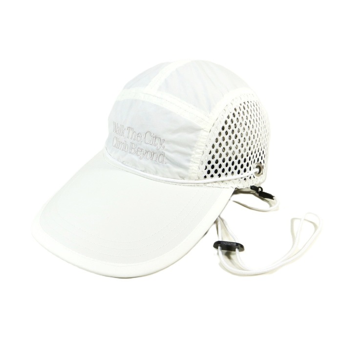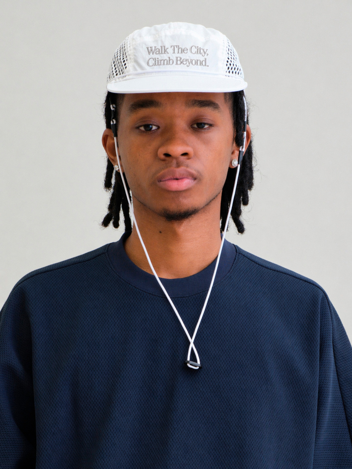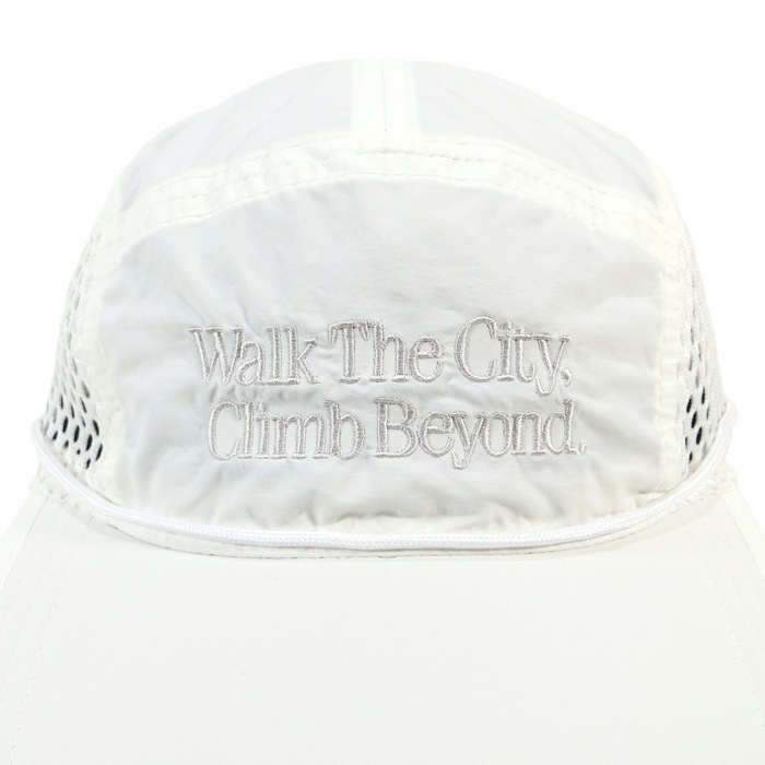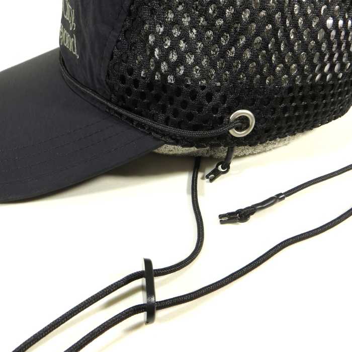 ドライでシワ感のある生地を採用した、都会的な印象のメッシュキャップ。フロントには“WTCB”刺繍を配置し、存在感あるアクセントに。日差しをしっかり遮るフラットロングバイザー仕様。脱着可能なチンストラップ付きで、風の強いシーンでも安心。後部にはドローコード式のサイズ調整を備え、快適なフィット感を実現。街でもアウトドアでも活躍する2WAYキャップです。