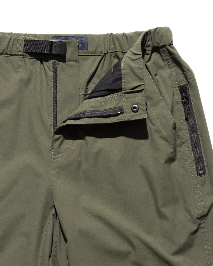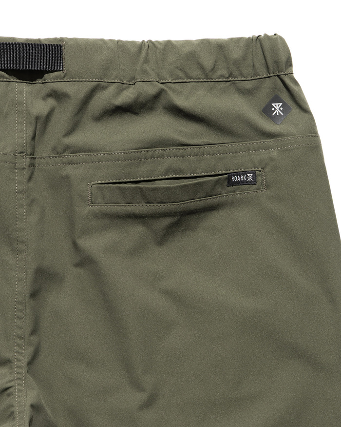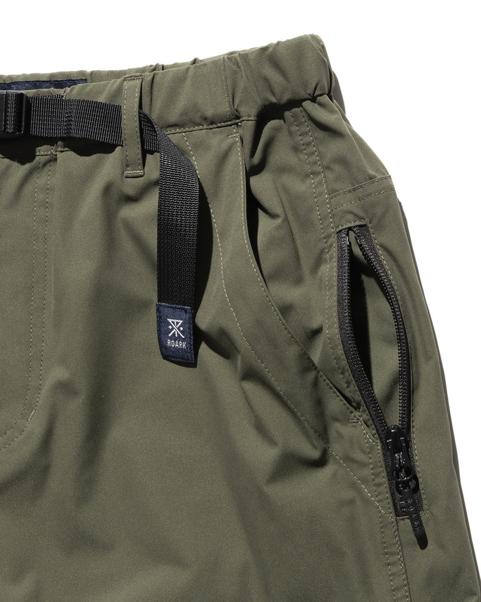 環境負荷の低い原料を使用し、ドライな質感で透湿・速乾・耐摩耗・ストレッチ・撥水・耐久性の機能を併せ持つROARK独自開発ファブリック"ROAM FREE FLEX" を採用した、TRAVEL PANTS 2.0 。従来のTRAVEL PANTSに、磁石で開閉が容易になったスマートフォン用サイドポケットや、ポケット内部にコインポケットを追加しました。180度自然な開脚が可能なガゼットクロッチ、象徴的なバーティカルジップポケット、片手でも調整可能なベルトの仕様など高い機能性も併せ持ちます。ウェービングベルトにはROARKのブランドアイコン、バックポケットにはブランドロゴがあしらわれています。NARROW FITは裾にかけて細くなる洗練されたテーパードシルエットのフィッティングラインです。