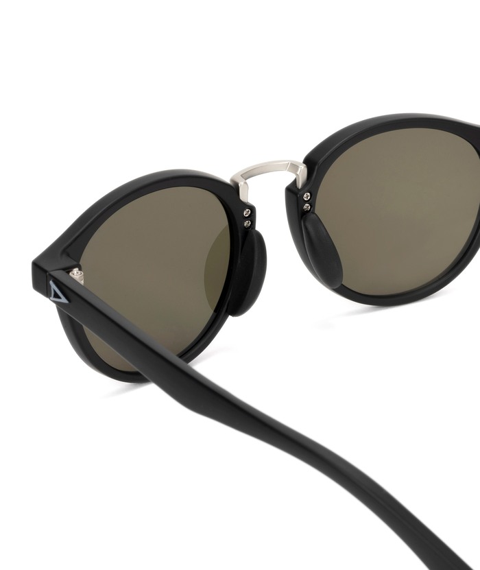 天地幅を抑えたボストンタイプのレンズシェイプにメタルブリッジを組み合わせて、新開発の細身のナローテンプルを採用。フレーム全体をスリムに仕上げる事で見た目、着用感共に軽快さを感じさせつつ、メタルのカシメ(ドット鋲)でクラシックさも演出しています。