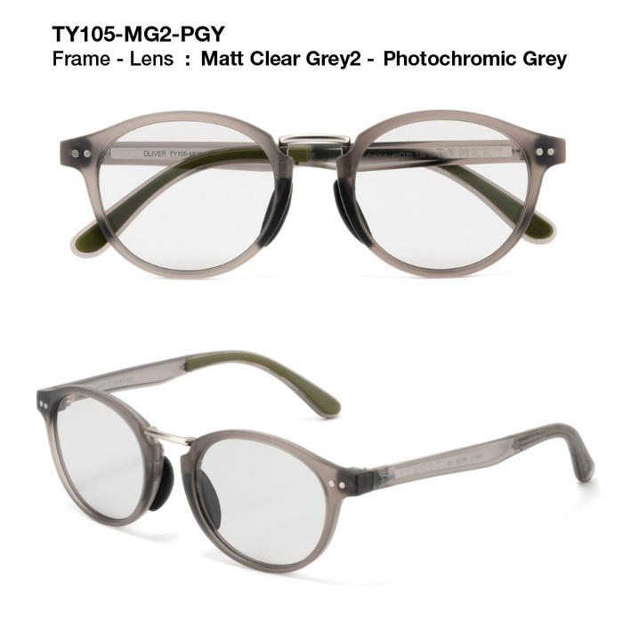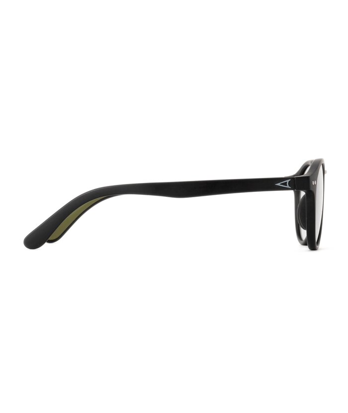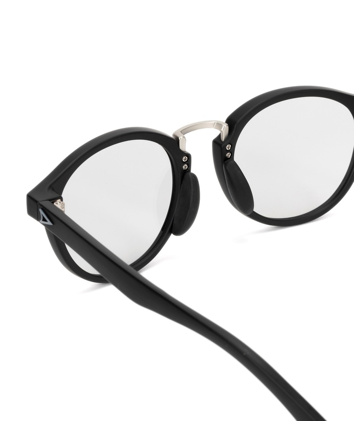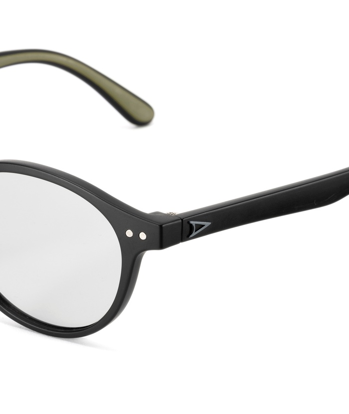 天地幅を抑えたボストンタイプのレンズシェイプにメタルブリッジを組み合わせて、新開発の細身のナローテンプルを採用。フレーム全体をスリムに仕上げる事で見た目、着用感共に軽快さを感じさせつつ、メタルのカシメ(ドット鋲)でクラシックさも演出しています。